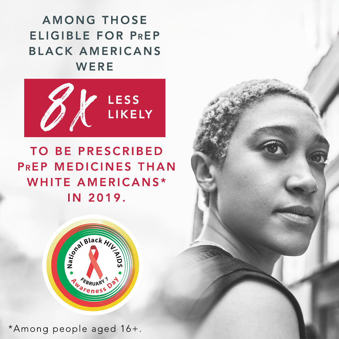 Of those who may benefit from PrEP, just 8% of Black Americans were prescribed PrEP in 2019 compared to 63% of White Americans. #GileadHIV #HIVAwareness #HIV #AIDS #HIVAIDS #EndTheHIVEpidemic #HIVCare #NBHAAD #StopHIVTogether
